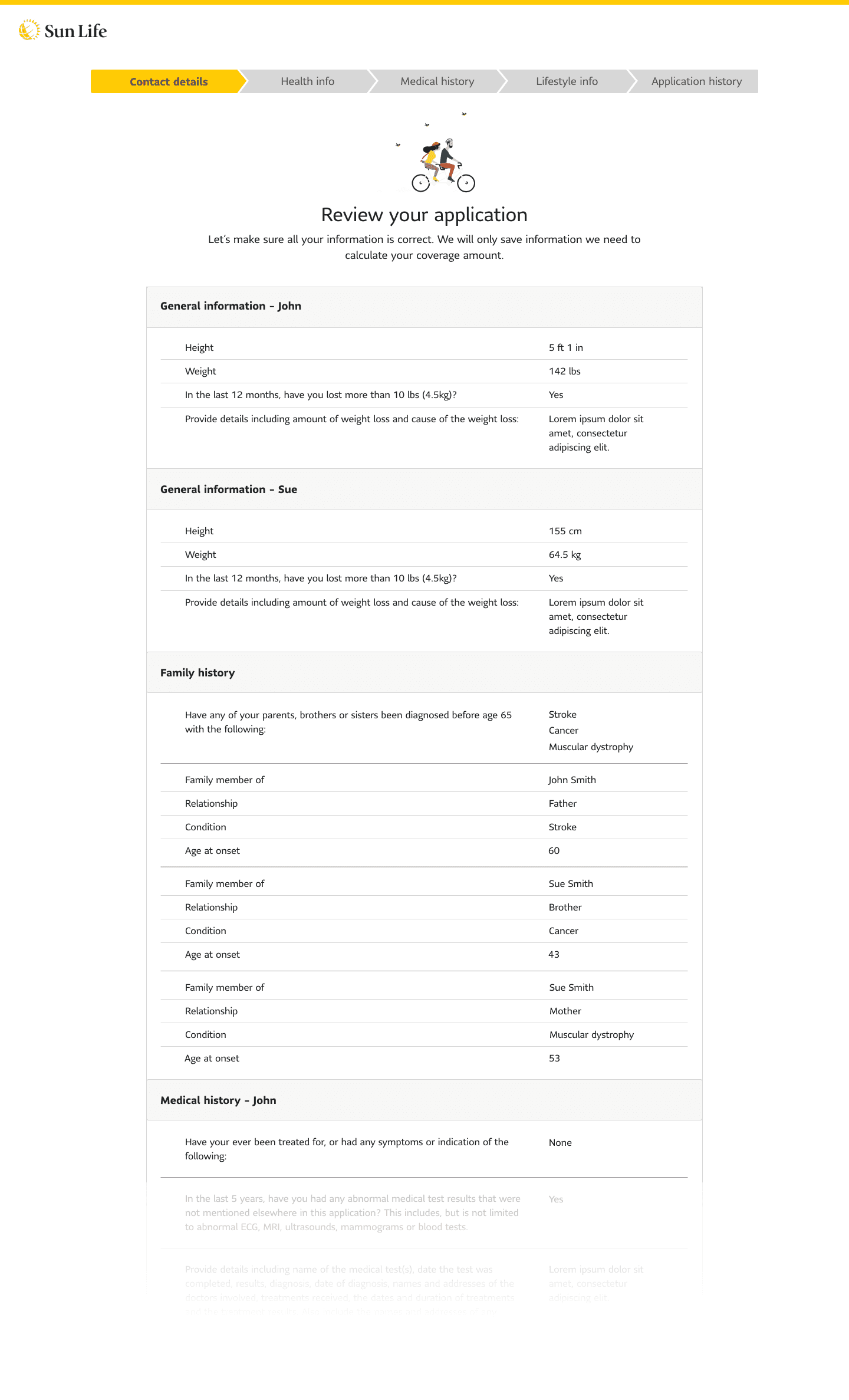 Once our customers have gone through and provided all their information to us we now have to make sure we can present it back to them in a clear and concise way. If we just throw up a plain chart showing lines upon lines of text not only are we reducing this experience to a very boring task but the customer is more likely to make mistakes. Their attention will wane as they’re put to sleep when they should be paying close attention when reviewing important information before submitting it.