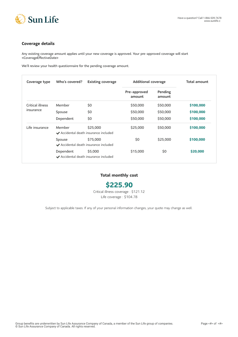 Typically, when an employee is offered a benefits package at their new job it includes common types of coverage such as life insurance, supplementary medical and dental, accidental death and dismemberment insurance and long-term disability. Voluntary Benefits allow customers to add additional group life insurance, life insurance for dependants, and critical illness insurance.