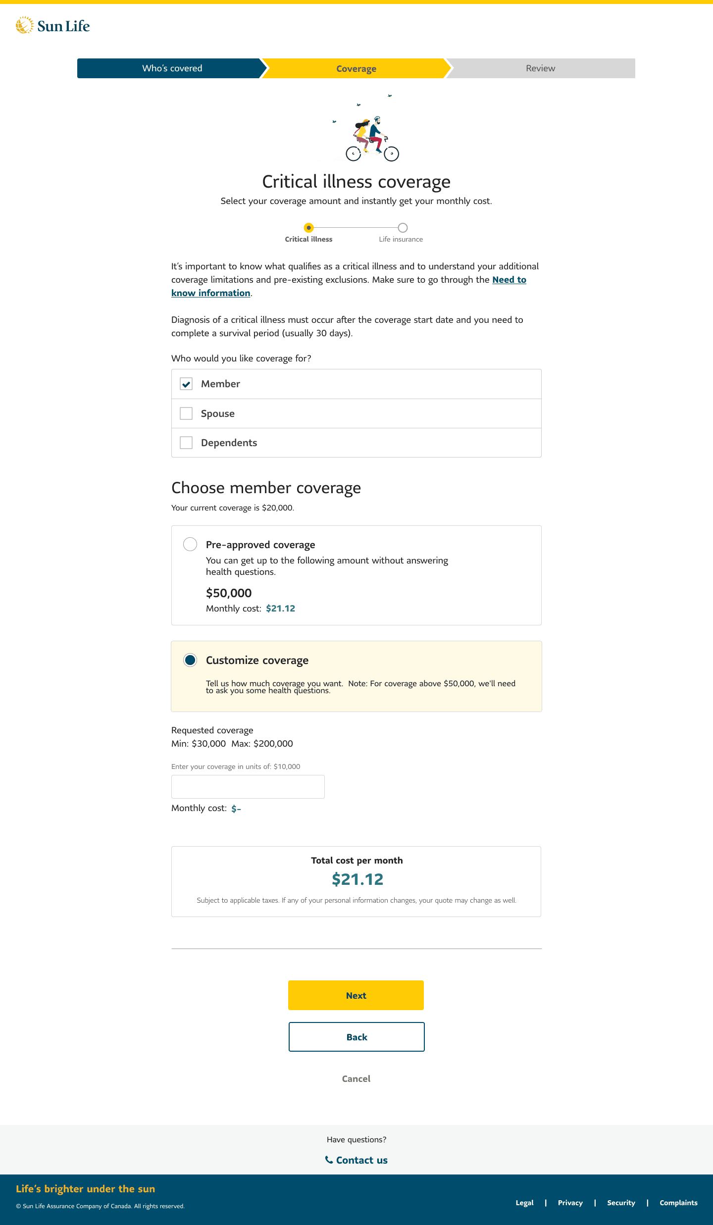 The challenge of voluntary benefits was conveying the right options at the right time while also adhering to a complex and restrictive structure that makes up life insurance. I had to ensure pertinent information was displayed to aid our customers in making the correct choices.