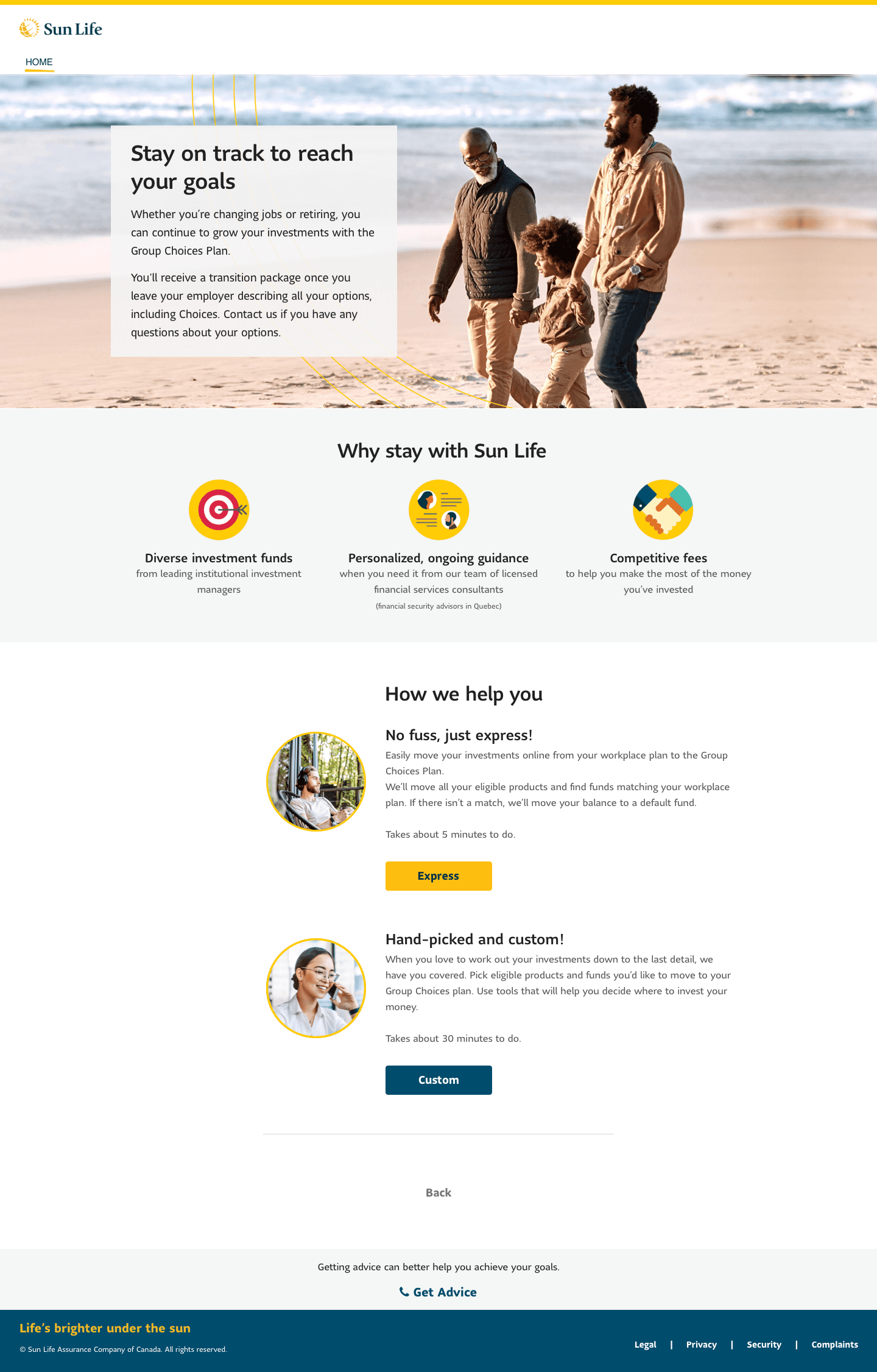 When it comes to SLF’s Choice customers there are two major demographics, the investment professionals and the regular less-involved customer who would rather not be reading investment charts. We had to ensure both were covered. The existing design where the customer could hand-pick each investment as they please was left in place and a new feature now called ‘Express’ was introduced. Express allowed the customer to forgo the tedious task of choosing investments and let SLF do the heavy lifting. Our objective was to encourage customers to transfer their existing investments via our newly designed process. Resulting design reduced the original enrolment process by 37%!